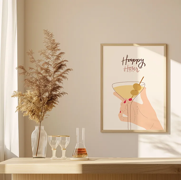 Derefter kan du med fordel tænke på, hvilket udtryk du ønsker dig. Aluminiumsrammer har en smal profil og giver et råt og industrielt look, mens vores rammer i træ har en bredere profil. Det gælder både bambusrammer, egetræsrammer og sorte og hvide rammer.
