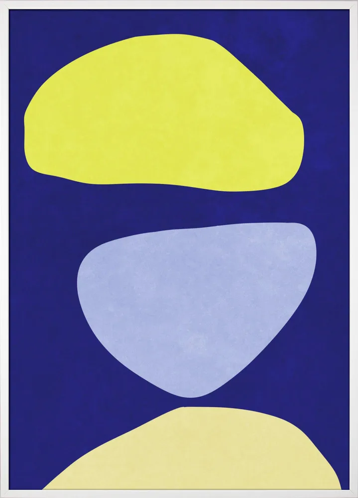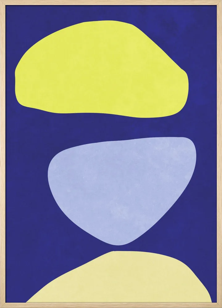 Raissa Oltmanns’ værk Abstract Forms Blue and Yellow kombinerer enkelhed og energi i en harmonisk balance. De bløde, organiske former i blå, gul og lysegrå skaber et grafisk motiv med klar Bauhaus-fornemmelse. Farverne spiller elegant sammen og tilfører både varme og kontrast til moderne rum. Plakaten passer perfekt i stuen, hjemmekontoret eller som en farverig detalje i en minimalistisk indretning.