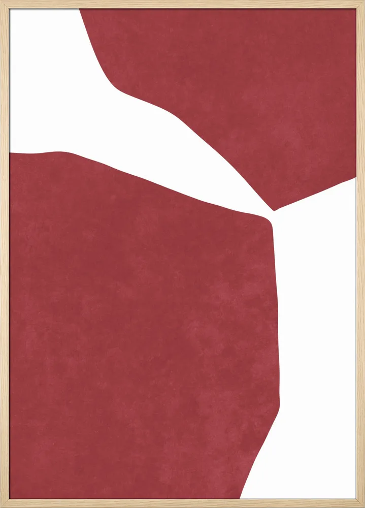 Abstract Red on White af Raissa Oltmanns viser, hvor effektfuld enkelhed kan være. De to røde former skaber en dynamisk balance på den hvide baggrund og leder tankerne mod moderne Bauhaus og abstrakt ekspressionisme. Farverne er dybe og intense, hvilket gør motivet ideelt som statement piece i stuen, kontoret eller et galleri-inspireret hjem. En plakat med selvtillid og visuel styrke.