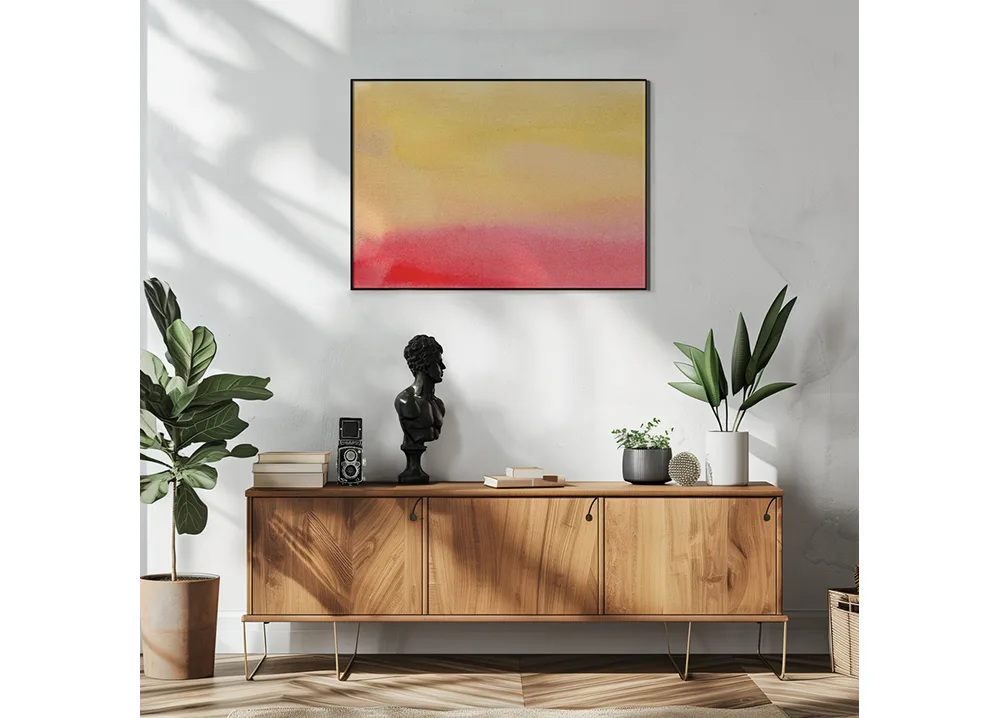 Motivet egner sig særlig godt til moderne, luftige rum, hvor farverne kan støtte en stemning af ro og velvære – fx soveværelset, stuen, hjemmekontoret eller et kreativt atelier. Værkets enkelhed gør det let at kombinere med andre abstrakte værker, især i farver, der ligger i samme bløde skala. Abstract Watercolor 11 er et perfekt valg for dig, der ønsker et kunstværk, der både giver rummet farve og samtidig har en afslappet, behagelig energi. Det er kunst, der ikke råber – men som fylder rummet med varme og tilstedeværelse.