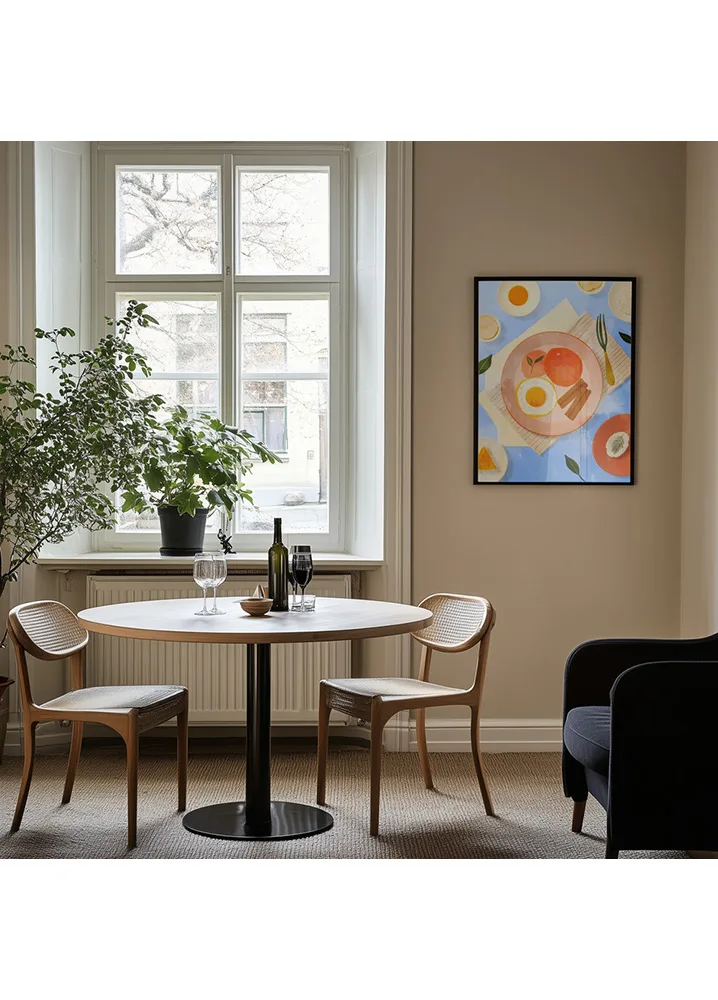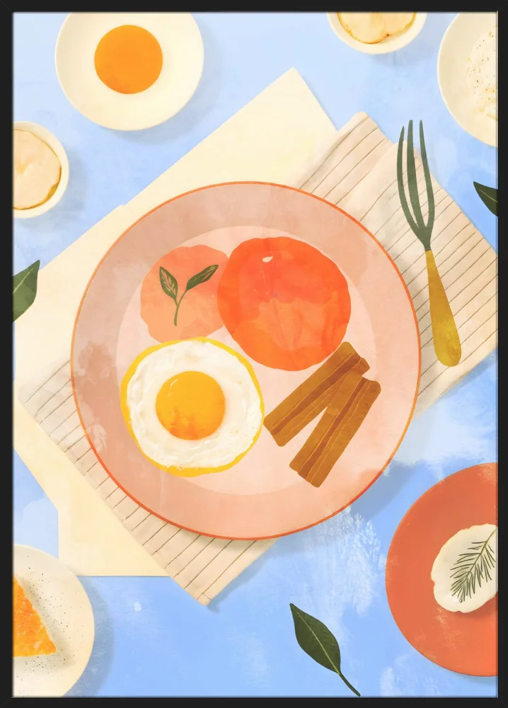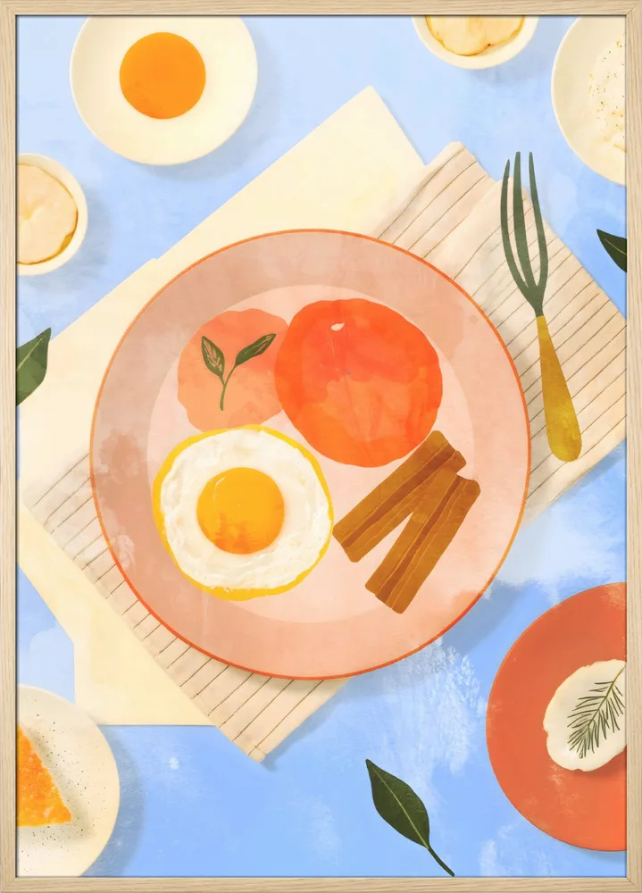 Farverig madplakat af Uma Gokhale med brunchinspireret motiv i pasteltoner. Legende og stilfuld på én gang.