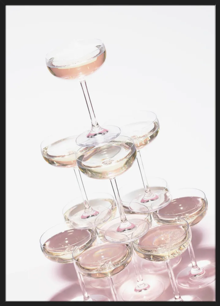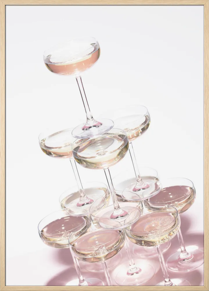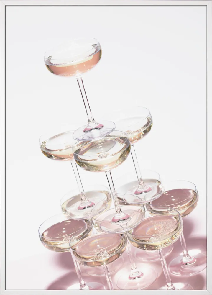 Champagne tower_1 fra Studio III (Pictufy) er et sofistikeret fotografi med fokus på form, lys og refleksion. De gyldne og rosa nuancer i glassene giver et eksklusivt og festligt udtryk, som gør motivet oplagt til barområdet, spisestuen eller en stilfuld entré. Et billede, der emmer af elegance, fejring og moderne æstetik.