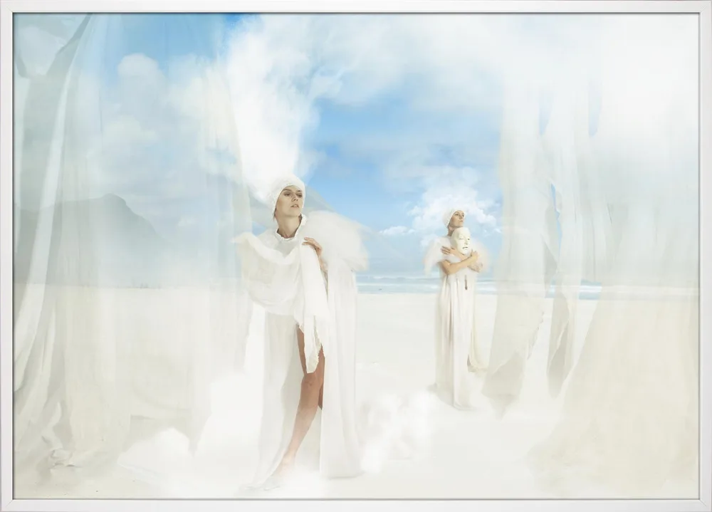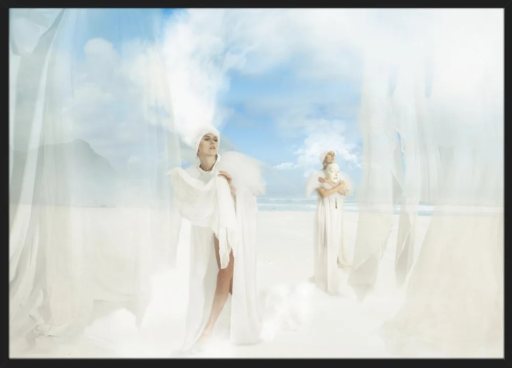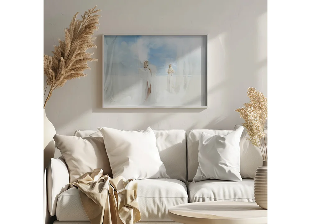 Christine von Diepenbroeks Cloudmakers er en visuel fortælling om fantasi, skabelse og balance. Farvepaletten domineres af hvide og blå toner, som giver billedet en drømmende og ren stemning. Lyset spiller en central rolle og skaber et næsten guddommeligt skær omkring figurerne. Et værk, der passer perfekt i minimalistiske hjem, hvor man ønsker at tilføje et strejf af mystik og spirituel ro.