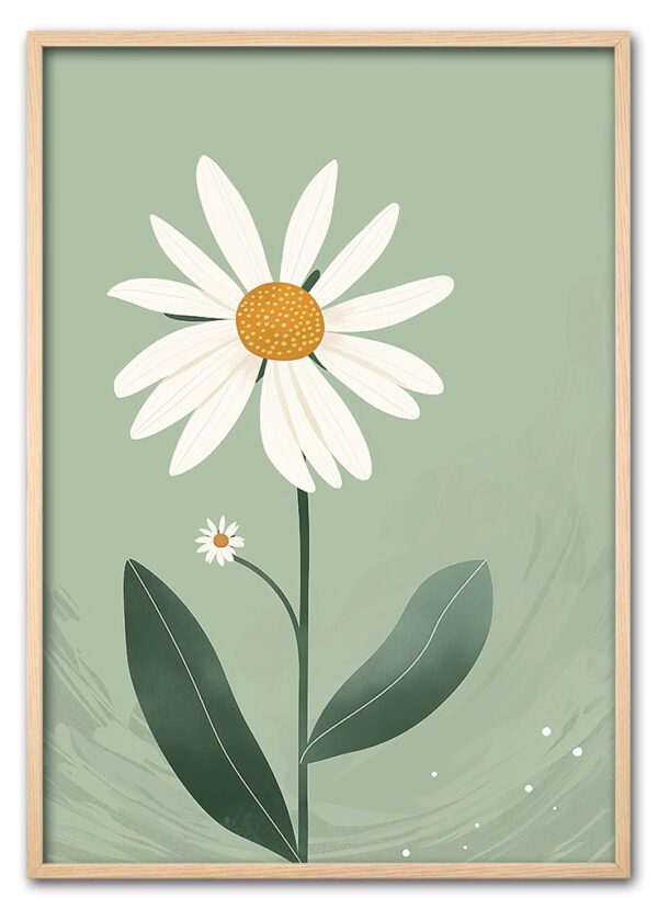 Enkelt margueritmotiv på blød grøn baggrund. En rolig og forårsagtig plakat med naturens egen elegance.