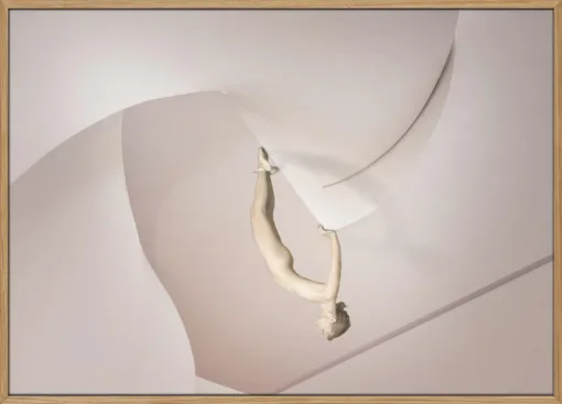 Christine von Diepenbroeks Downunder leger med perspektiv og form i et næsten skulpturelt univers. De bløde folder af stof og den dæmpede farvepalet skaber en følelse af stilhed og drøm. Værket kombinerer menneskelig bevægelse med arkitektonisk præcision og fungerer smukt i rum med lys og ro – fx i soveværelset eller på en væg med minimalistisk kunst.