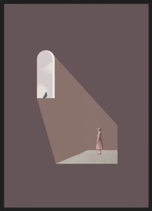 Enlighten me af Maarten Leon udforsker idéen om erkendelse og klarhed i et surrealistisk billedunivers. Værket kombinerer vintageelementer med nutidig æstetik og fremhæver kunstnerens evne til at skabe balance mellem humor og eftertanke. Farverne bevæger sig i varme toner af sand, rosa og let blå, der giver et roligt og afbalanceret udtryk. Plakaten fungerer som et visuelt anker i rum, hvor man ønsker refleksion og ro. Den passer særligt godt i stuen, soveværelset eller som et stemningsfuldt indslag på hjemmekontoret. Fås i størrelserne A2, A3 og 50×70 cm.