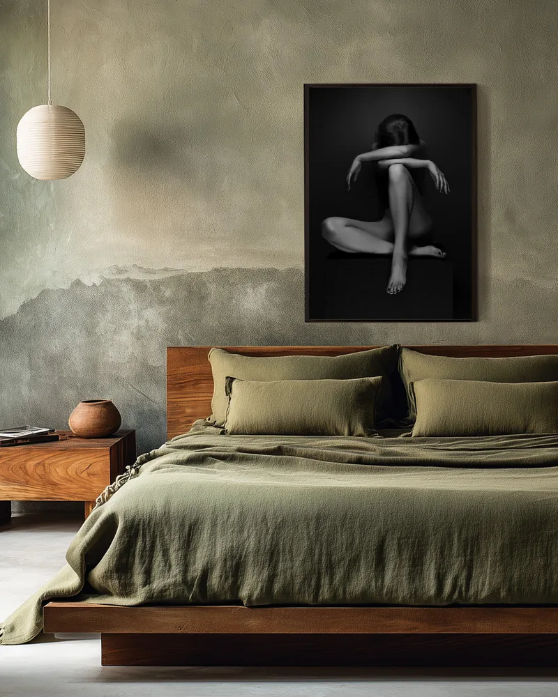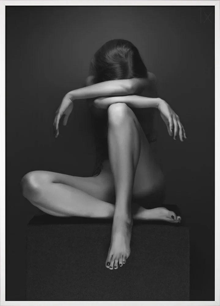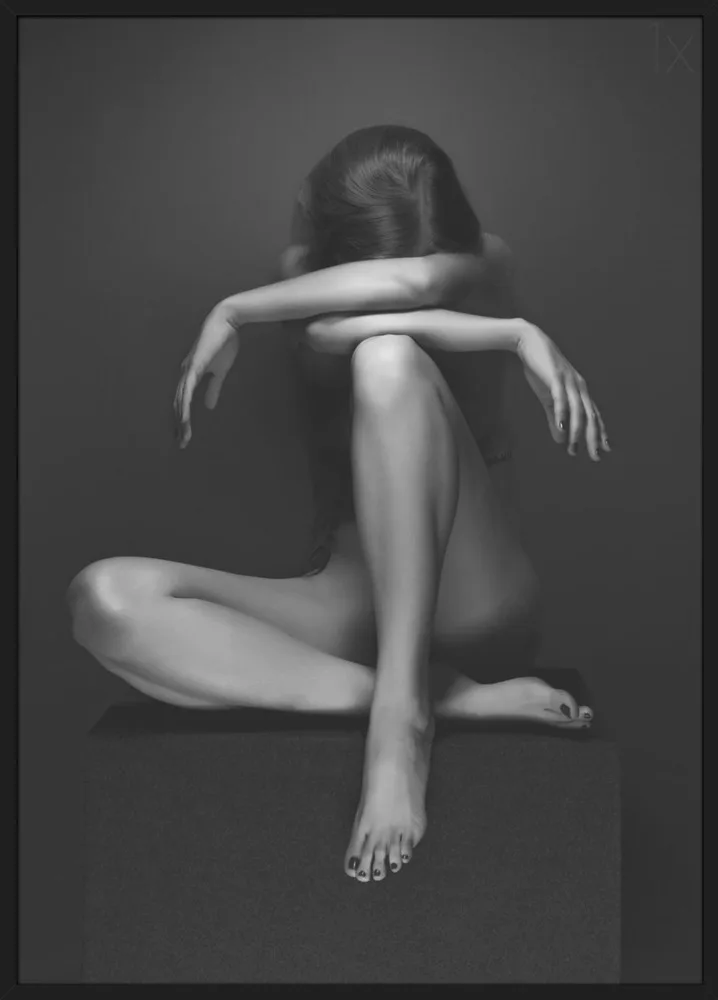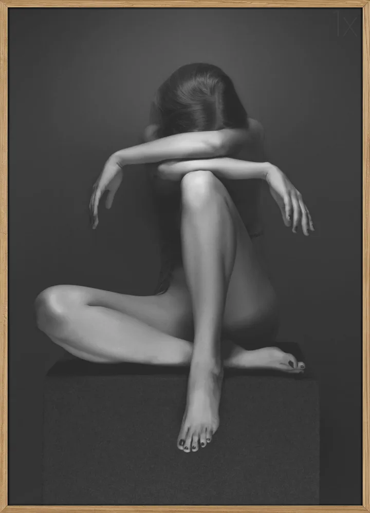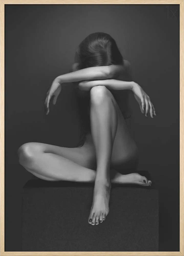 Eszter af Jozef Kiss indfanger et øjeblik af eftertænksomhed og skrøbelighed. Den siddende figur, badet i blødt lys, udstråler ro og melankoli. Det minimalistiske sort-hvide udtryk fremhæver form og bevægelse frem for detaljer og farve. Resultatet er en intim og æstetisk plakat, der bringer ro og balance til hjemmet – perfekt til soveværelse, atelier eller et hjørne, hvor man ønsker fordybelse og stil.