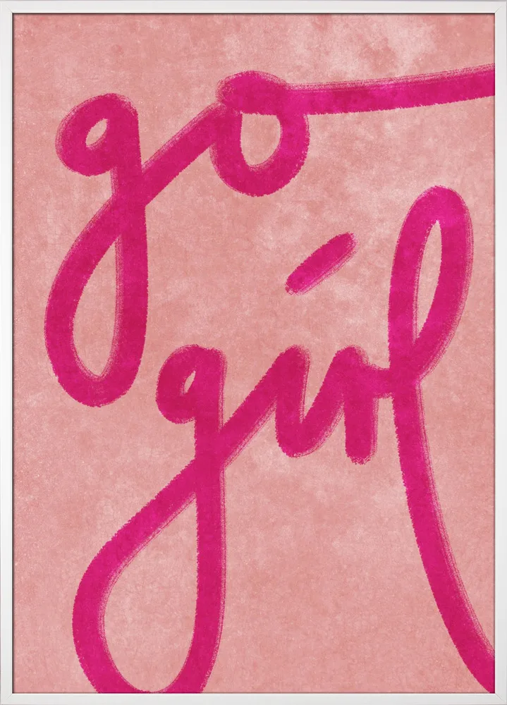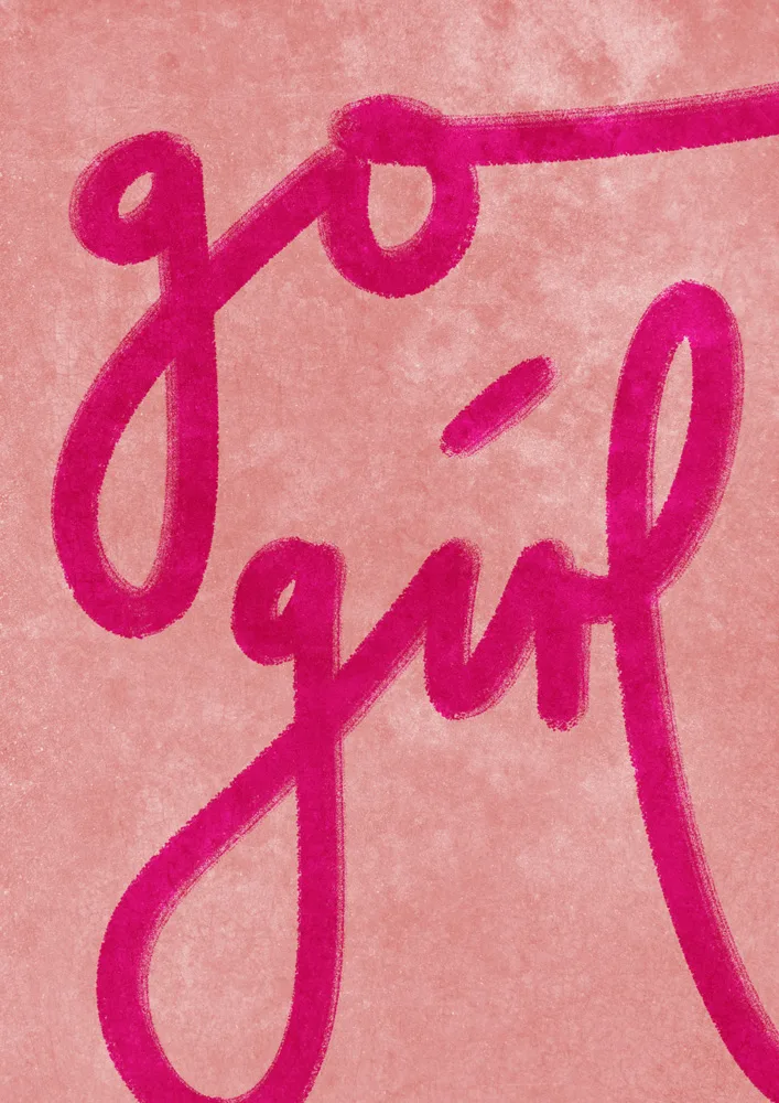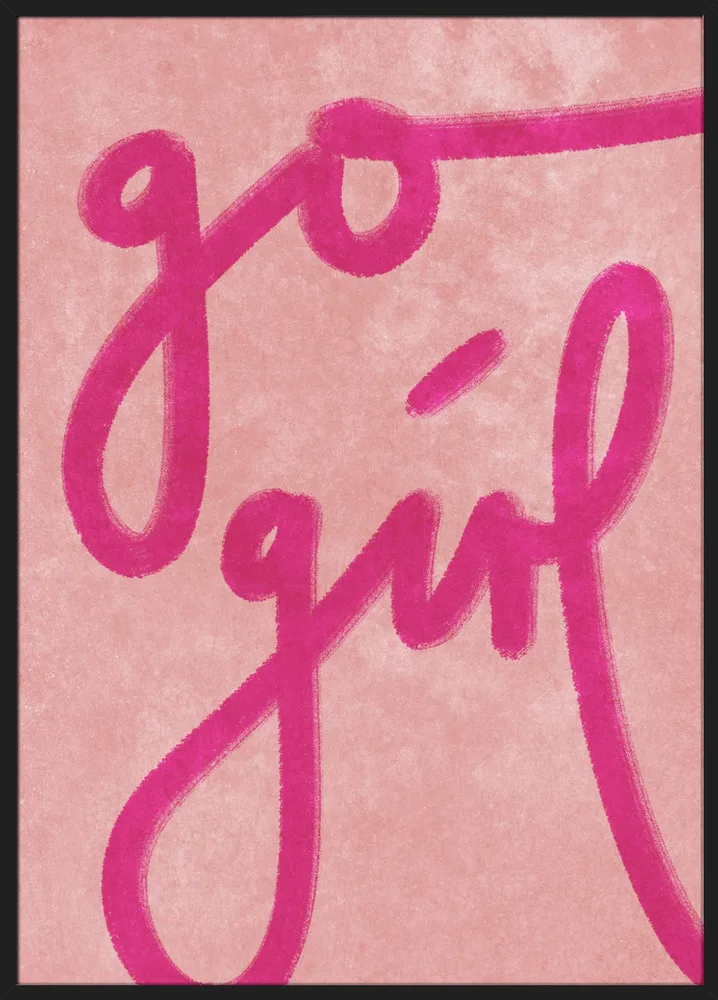 Farverig tekstplakat med budskabet “Go Girl”. Et simpelt og opløftende motiv i lyserød.