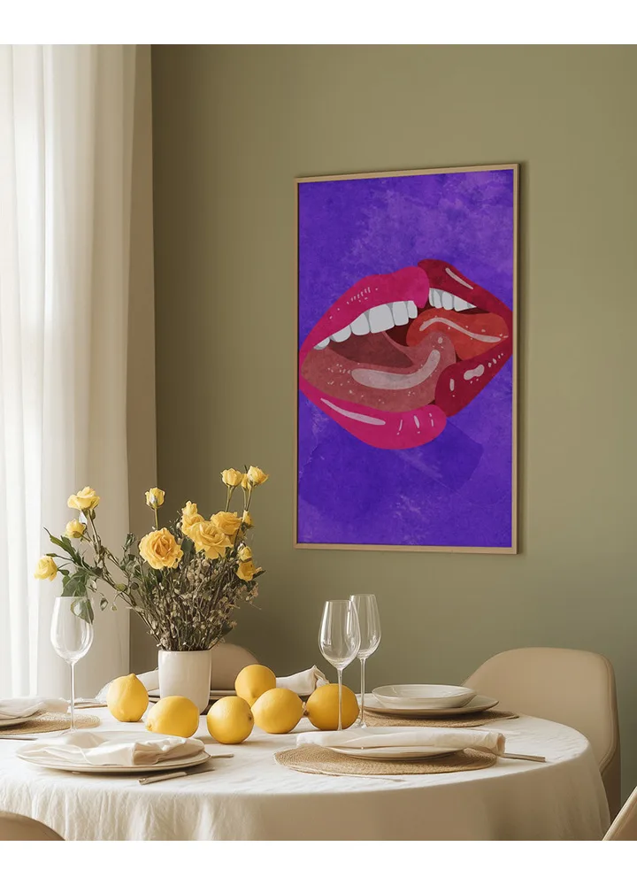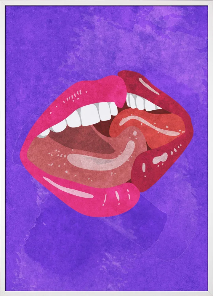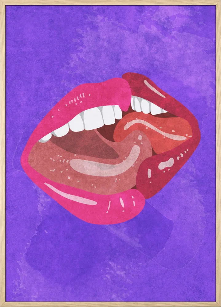 Raissa Oltmanns’ Kissing kombinerer passion og grafisk æstetik. De røde og lilla toner giver motivet liv og energi, mens de rene former giver et moderne twist. Et oplagt valg til soveværelse eller stue for dem, der ønsker et stærkt og udtryksfuldt statement på væggen.