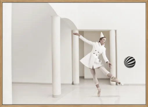 I La Pulcinella kombinerer Christine von Diepenbroeck scenekunstens udtryk med moderne æstetik. Det rene, lyse rum og de hvide søjler fremhæver figurens bevægelse og kostumets skulpturelle kvalitet. Et værk, der udstråler balance, poesi og ro – perfekt til soveværelse, galleri eller et kontor med sans for design og form.