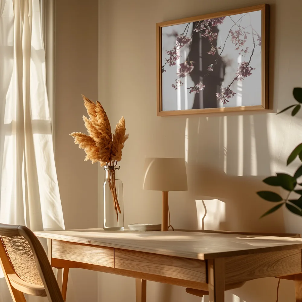 Fotokunst af Tsuneya Fujii med kirsebærblomster i blødt lys. Et poetisk og stemningsfuldt forårsmotiv.