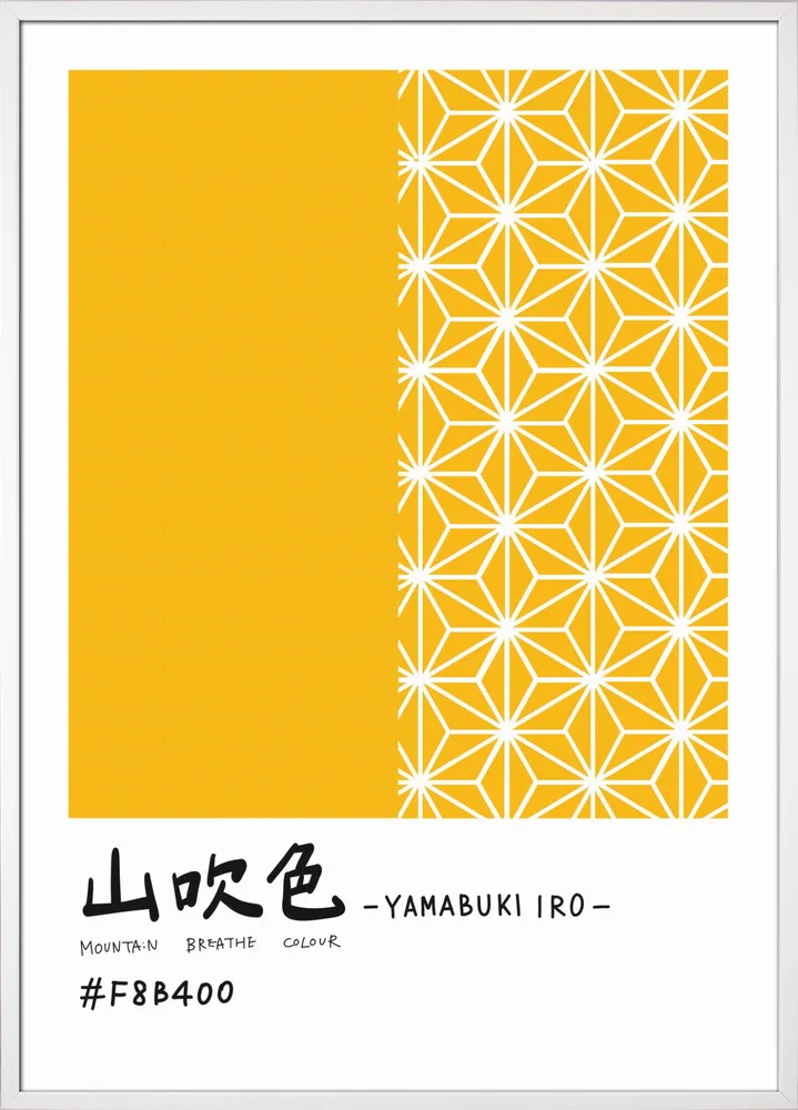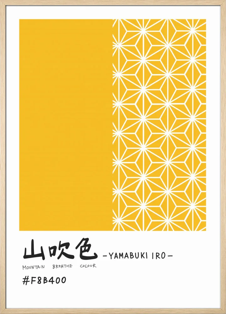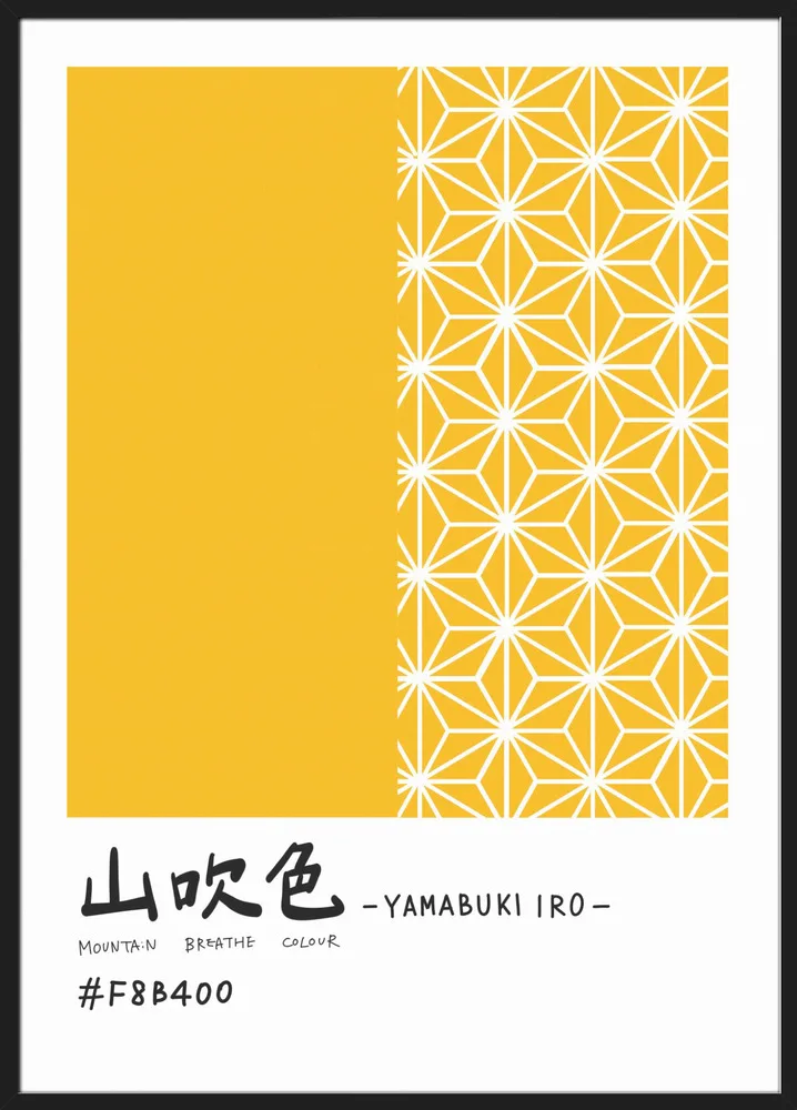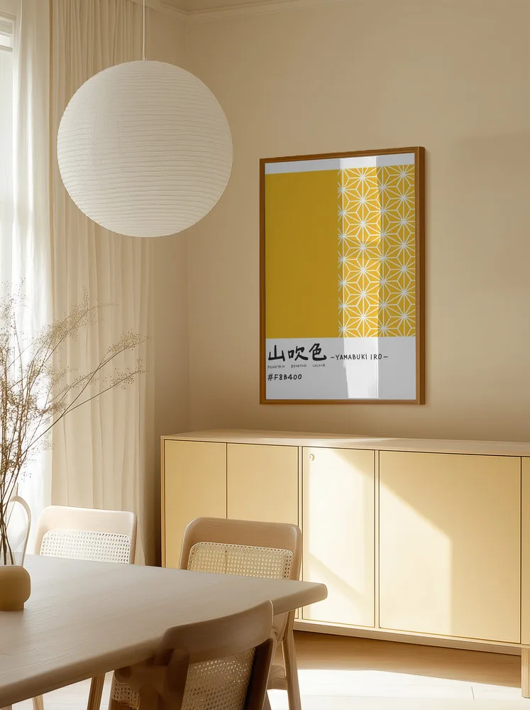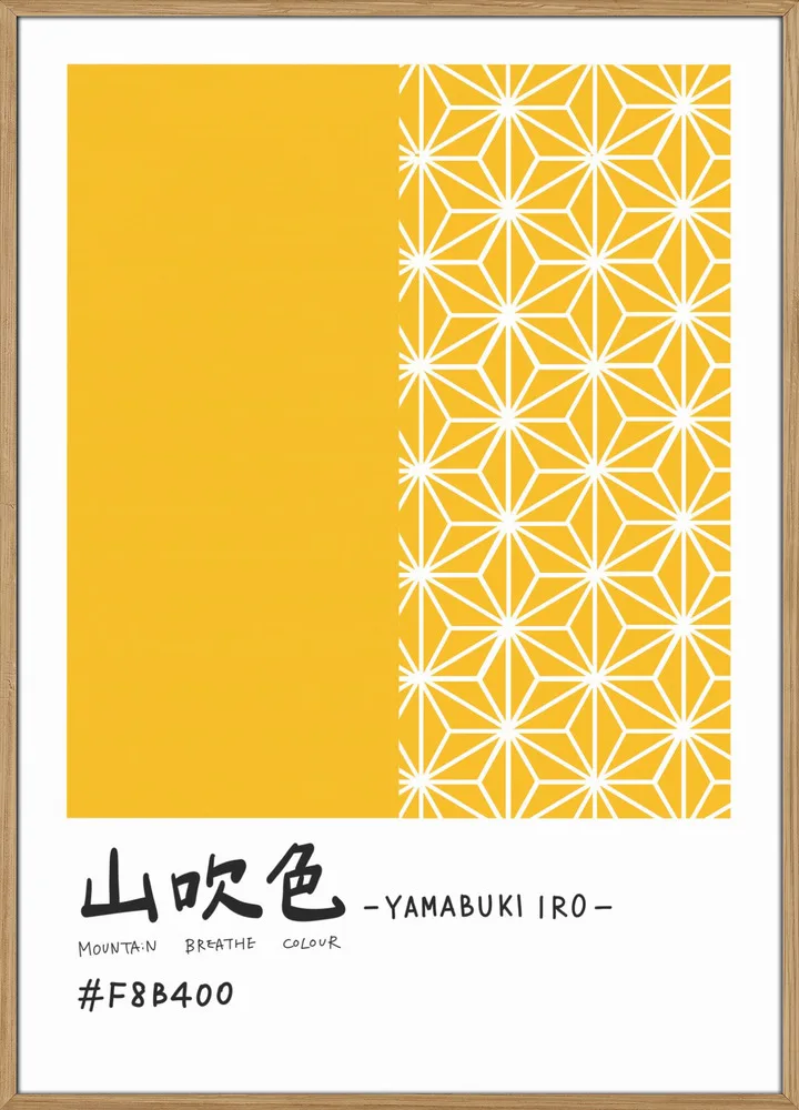 Traditional Japanese Flower Pattern and Calligraphy 1 af Rio Yellow er et minimalistisk værk, der kombinerer japansk mønsterkunst med kalligrafisk præcision. De gyldne toner og gentagne blomsterformer skaber et harmonisk og raffineret udtryk. Et smukt valg til stuer, kontorer eller entréer, hvor man ønsker varme og stilren æstetik. Motivet fremstår både moderne og traditionelt – et visuelt nik til japansk designkultur.