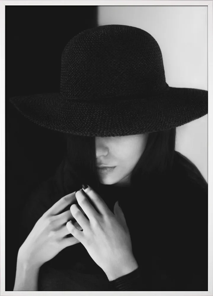 ‘Untitled’ af Bobby Kostadinov er en sofistikeret fotokunstplakat, der forener ro og mystik i én komposition. Kvindens ansigt gemmes i skyggen under den brede hat, hvilket giver motivet et diskret, men intenst udtryk. Rebestinis klassiske stil og præcise lysføring gør plakaten ideel til moderne, elegante omgivelser – perfekt til stue, gang eller soveværelse.