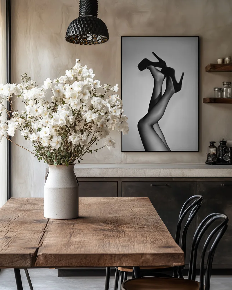‘Velvet Pumps’ af Pictufy Studio III er en moderne fotokunstplakat, hvor feminine ben i høje hæle bliver til et grafisk statement. Den sort/hvide kontrast fremhæver både elegance og humor i motivet. Studio III er kendt for at skabe ikoniske billeder med fashion-vibe og selvtillid. En perfekt plakat til walk-in, soveværelse eller galleri-væg, hvor stilen gerne må være selvsikker og cool.