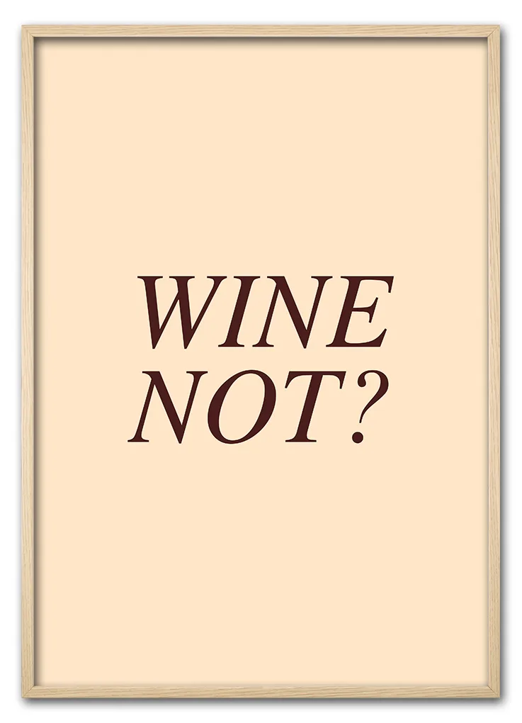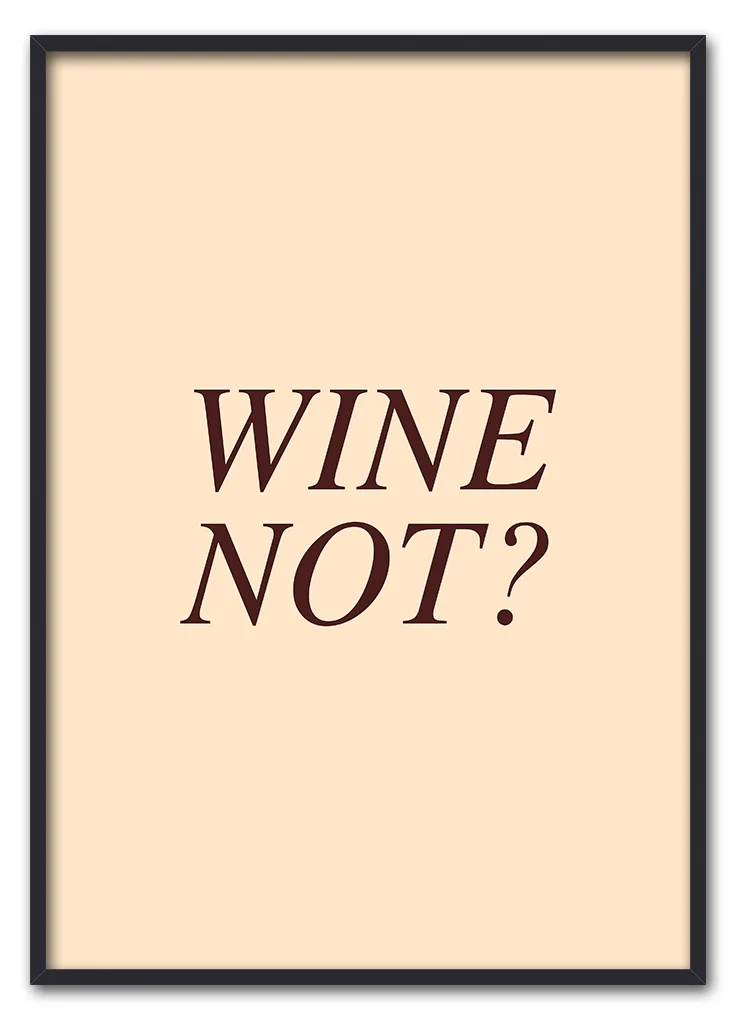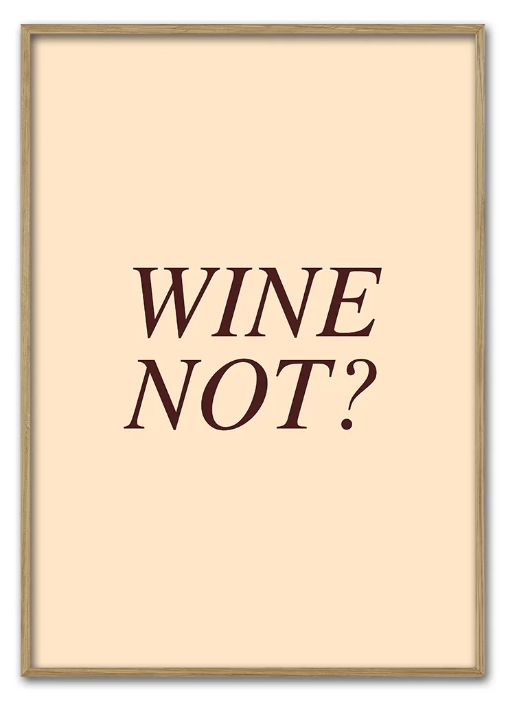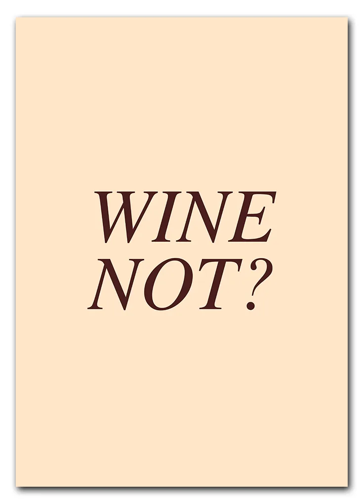 Typografisk plakat med teksten Wine Not? Enkel, sjov og stilren til vinkrogen.